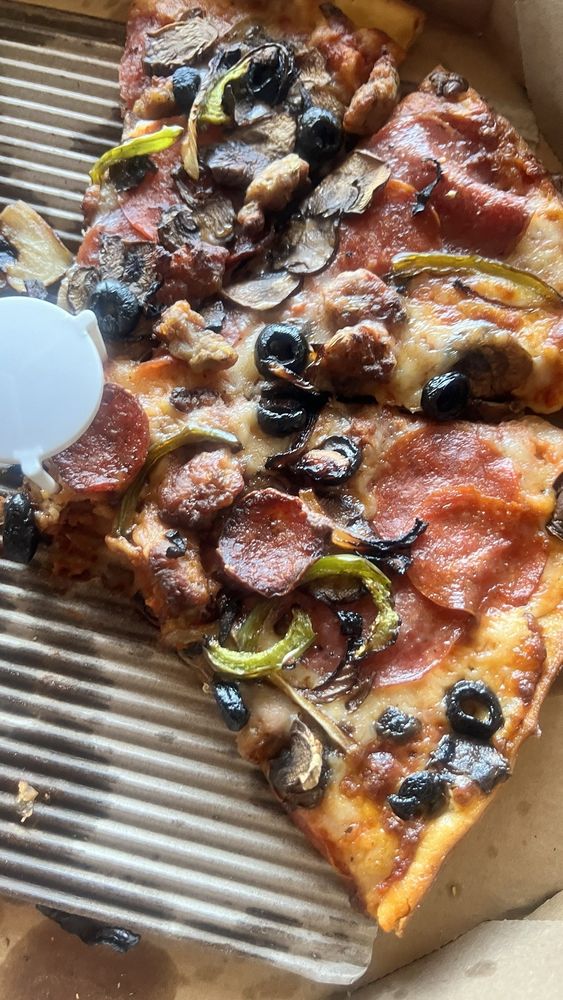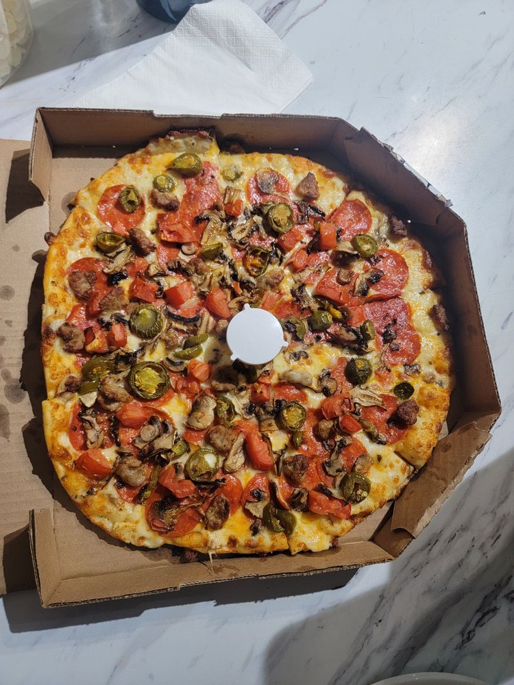 A legendary combination. Pepperoni, Italian sausage, salami, linguica, mushrooms, green peppers, yellow onions, black olives on zesty red sauce.