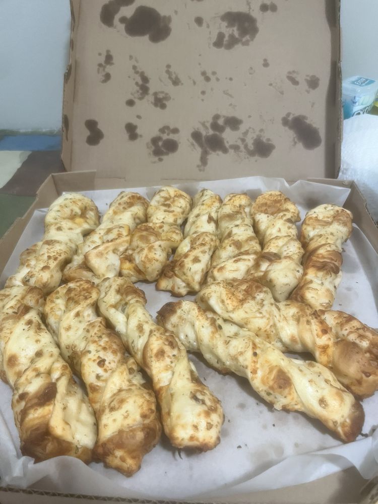 Our famous garlic Parmesan twists. Rolled fresh daily and baked to perfection with fresh garlic, our 3 cheese blend and Parmesan cheese. Served with your choice of dipping sauce. Extra dressing for an additional charge.